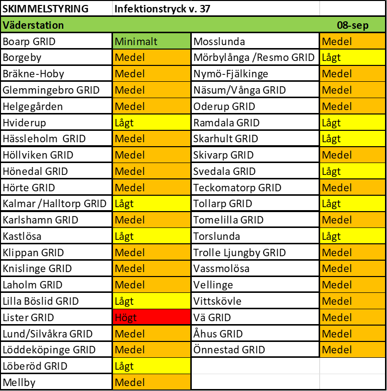 - · Högt bladmögeltryck i månadsskiftet augusti/september