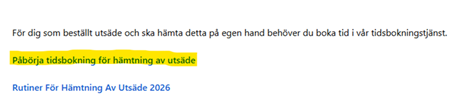 - Klicka på ”Påbörja tidsbokning för hämtning av utsäde”