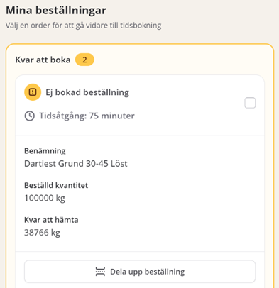 - Välj alternativet ”Dela upp beställning” om du vill hämta en del av beställningen.