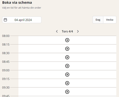 Tidsbokning (gäller endast egenhämtning)